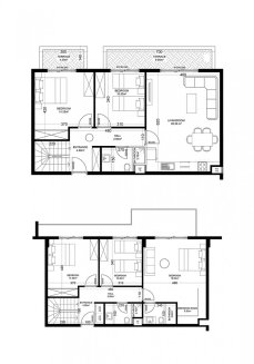 Планировки включают спальни, ванные комнаты и гостиную, объединенную с открытой кухней. В варианте 6+2 обустроены 2 гостиные. Во всех квартирах будут просторные балконы и/или террасы, с которых открывается прекрасный вид на окрестности.
